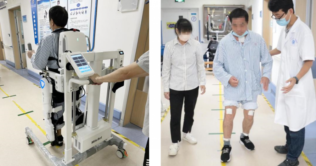 圖1 中風患者臨床康復訓練(a)患者穿戴外骨骼進行步態康復訓練;(b)采集患者訓練后康復評估指標
