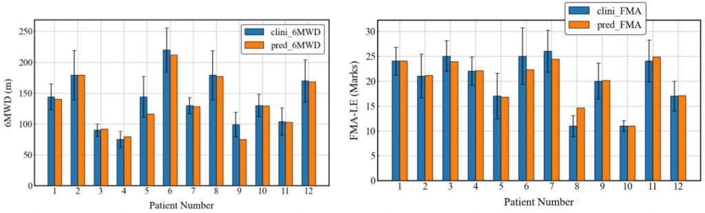 當有效預測偏差絕對值設置為真實值的20%時,智能康復評估模型對6MWD、FMA-LE的預測準確率分別為85.19%、92.66%。